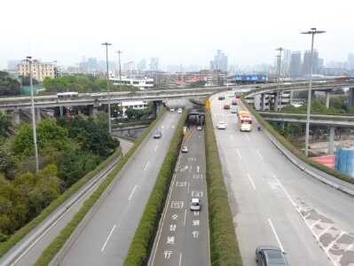 白鹤洞立交南往北直行匝道位于广州市荔湾区。在该匝道中部,连接着鹤洞大桥西往北方向匝道,在车流交织情况下,交通安全隐患较大。该匝道原设计为两车道,此前,为避免两条匝道汇流处事故发生,广州交警在该匝道南往北上游约100米处,采用导流线渠化为一条车道。但该匝道一旦车流饱和,在2变1车道减少处,往往会出现车辆争道抢行等交通秩序问题。