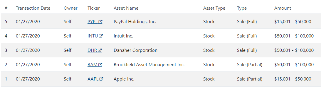 一份披露报告显示,詹姆斯·英霍夫先生于1月27日出售了大量股票,包括在贝宝、苹果和房地产公司Brookfifield Asset Management的股票,总价值达40万美元。