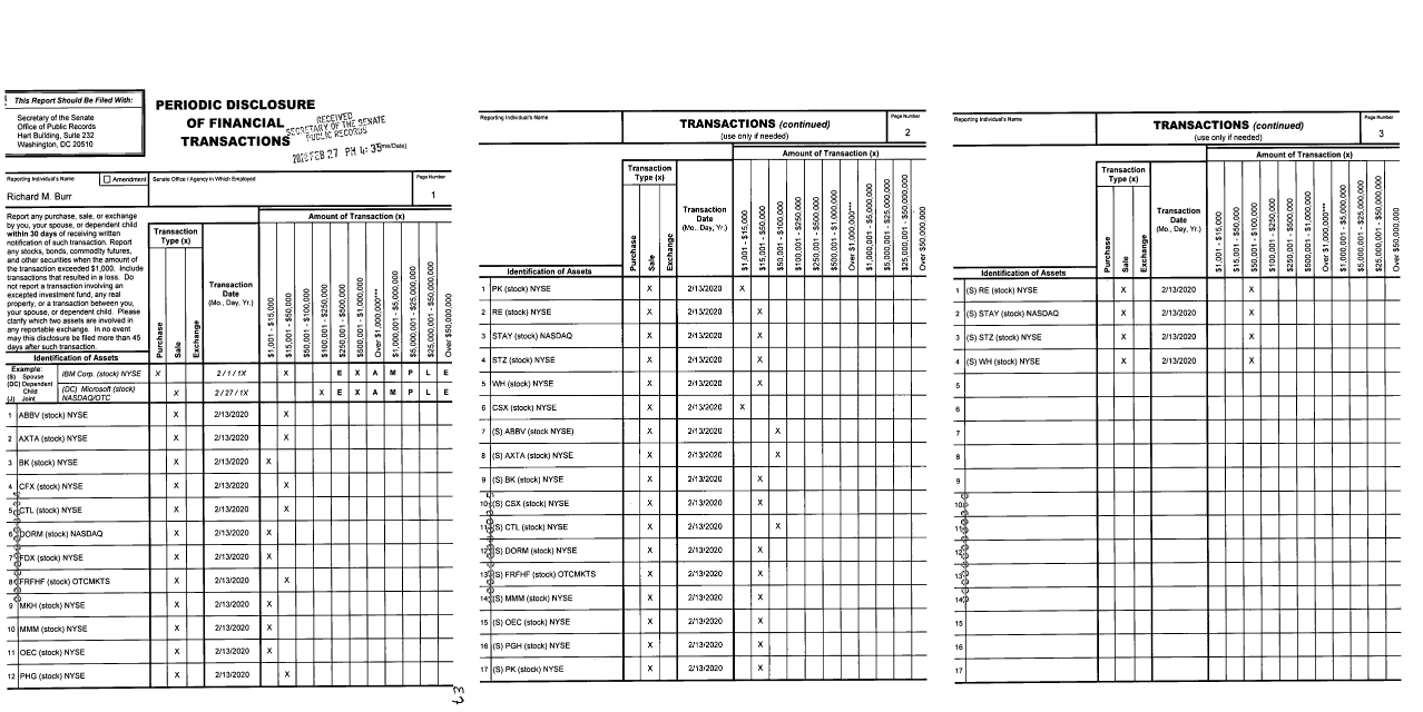 据美媒披露,伯尔的股票交易记录显示,他和妻子在2月13日卖出了33只不同的股票,总估值在62.8万至170万美元之间,其中包括价值15万美元的两家连锁酒店的股票。最近几周,这两家公司的价值都大幅下降。他还出售了价值6.5万美元的Park Hotels &Resorts股票。伯尔抛售股票的数据,是美国媒体通过美国国会的相关官员财产公开机制获得的。2月13日的抛售行为,他2月27日上报。
