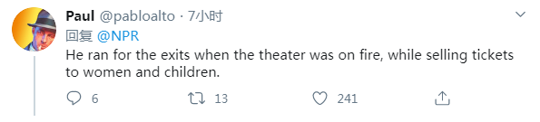 网友:“戏院失火时他从出口溜走了,同时还顺手把戏票卖给了妇女儿童。”