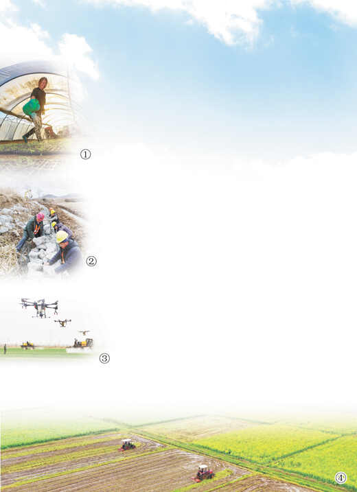 图④:3月11日,在江西省吉安市泰和县沙村镇绵溪村,农机手正驾驶农业机械进行翻耕整地作业。