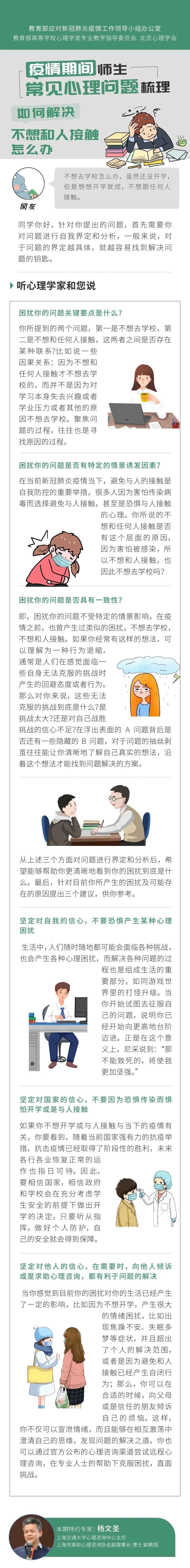 今天,推出《用“心”战“疫”》第 期,随教育小微一起来听上海交通大学心理咨询中心主任杨文圣、南京大学心理健康教育与研究中心主任费俊峰详解,疫情期间师生常见心理问题如何调整↓↓↓