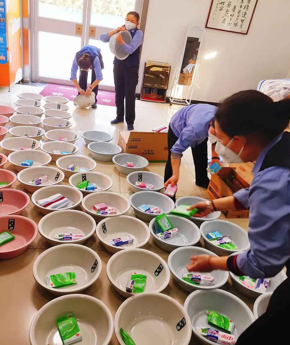 100多米长的严密围墙,将党校分为隔离区和服务区。客房部把所有房间的洗漱用品摆放到位,启用了崭新的棉被,新购了800多套洗脸盆、牙具、洗发水、洗衣液等生活物品。餐厅开启炉灶,消毒餐具,调节气压,调试设备,加紧联系食材供应,一切准备井然有序。
