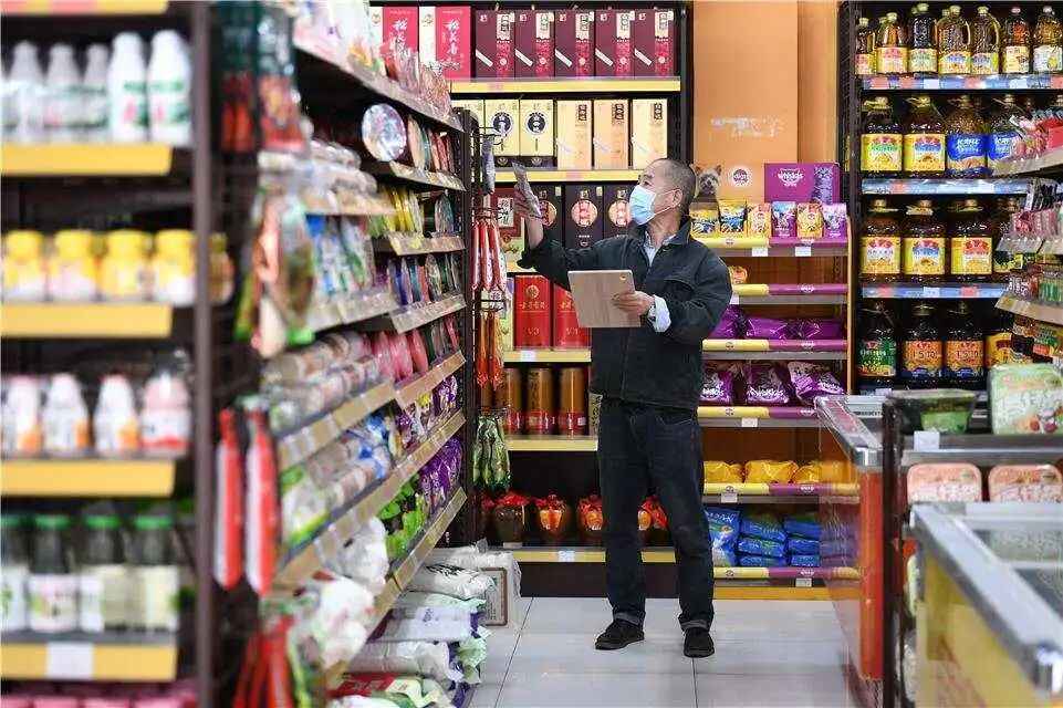 3月23日,武汉市青山区青山镇街船厂社区中百超市,居民在选购。工作人员介绍,超市内物资充足,放开后也没有出现抢购现象。
