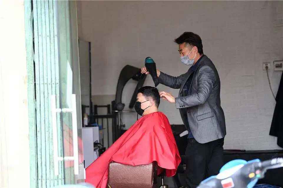 3月23日,武汉市青山区青山镇街船厂社区,一位居民在理发。