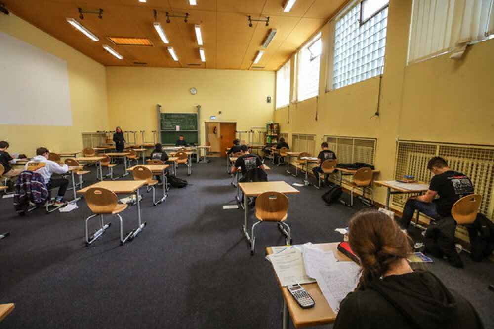 3月20日,在德国法兰克福,学生们在一座体育馆里参加高中毕业考试。新华社/欧新