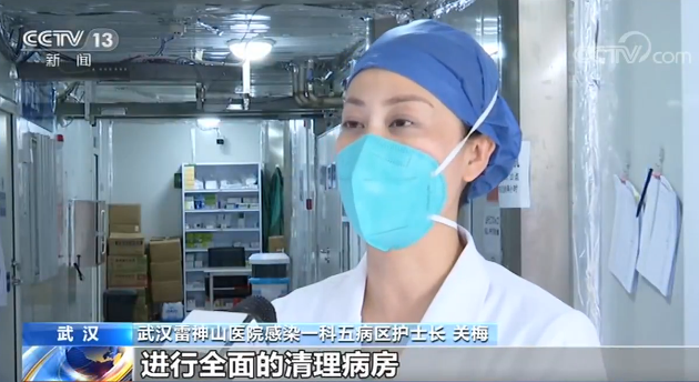 武汉雷神山医院感染一科五病区护士长 关梅:我们病区结束工作以后,护士还将进入舱里全面清理病房,整理仪器、设备、药品,归类并做消杀。