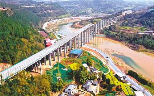 中国能建葛洲坝集团投资建设的巴万高速通江河特大桥正在加紧施工。(葛洲坝集团供图)