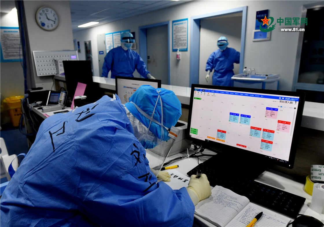 解放军报记者 王传顺 摄 病区里忙碌的身影,诠释了医护人员勇挑重担、敢打硬战和不怕疲劳连续作战的优良作风。解放军报记者...