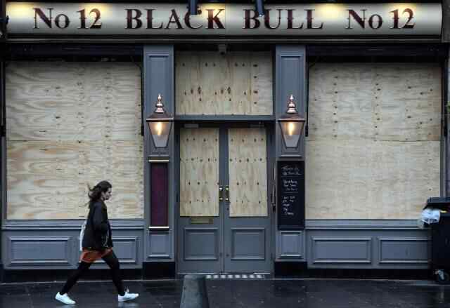 3月26日,在英国爱丁堡,一名女子经过一家关门停业的酒吧。新华社发