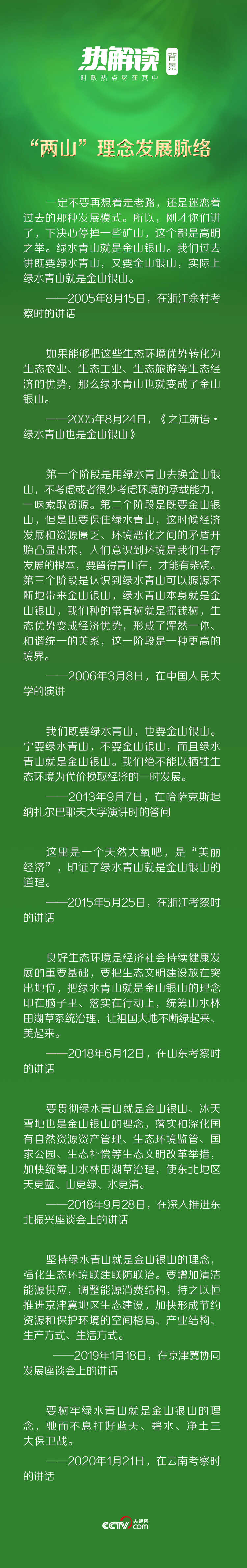 9天后,习近平在浙江日报《之江新语》专栏发表了评论——《绿水青山也是金山银山》:“如果能够把这些生态环境优势转化为生态农业、生态工业、生态旅游等生态经济的优势,那么绿水青山也就变成了金山银山。”