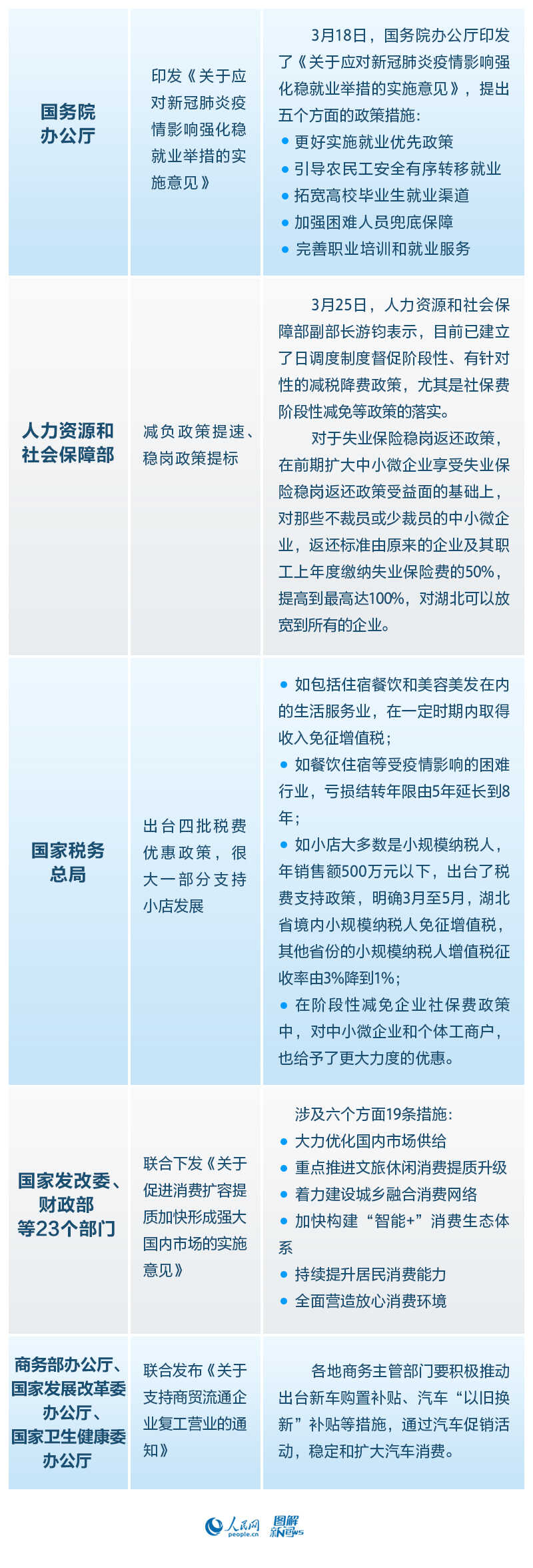 自3月中旬以来,这套“政策组合拳”就开始施展,多部委出台了相关政策,从减负、稳岗等方面着重发力,扶持中小企业。同时还出台了一系列举措,扩大消费,促活经济。