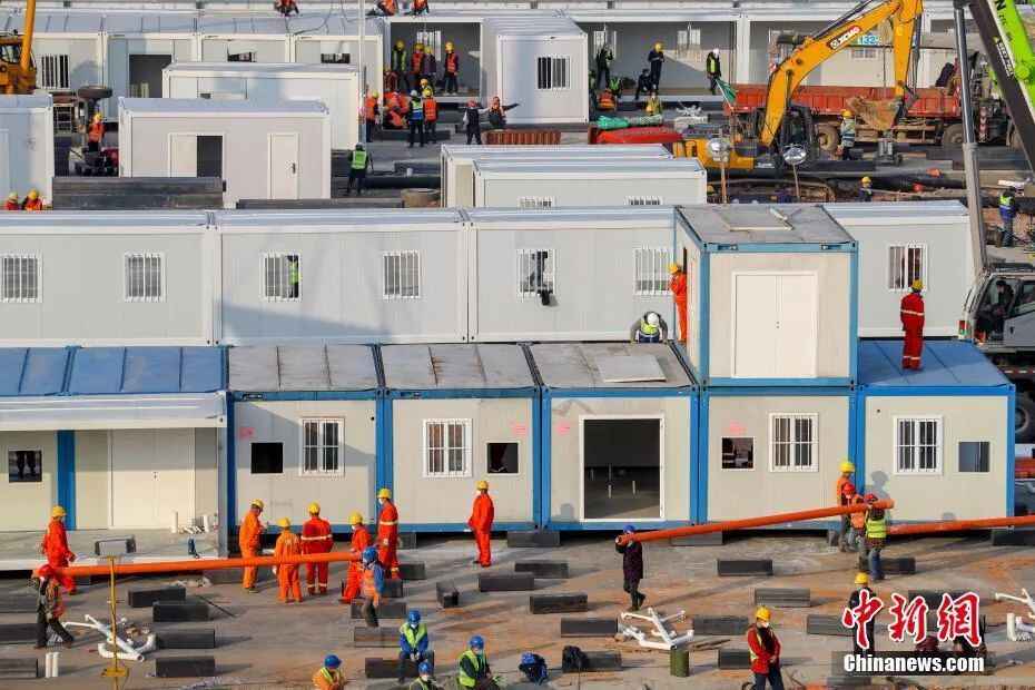 资料图:1月30日,火神山医院施工现场,各项施工项目在全速推进中。中新社记者 张畅 摄