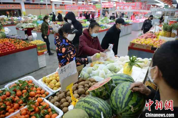 资料图:呼和浩特菜市场上人流涌动。 刘文华 摄