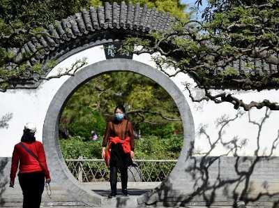 一位市民在北京地坛公园散步。中新社记者 侯宇 摄