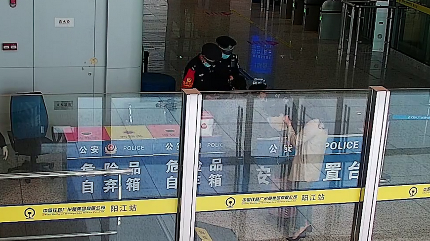 4月5日10时许,阳江高铁站安检员发现一位女子携带的灰色单肩背包内存有可疑物品,外形很像子弹。安检人员马上通知了执勤民警,经开包检查,包内竟藏有两枚长约6厘米的步枪子弹。