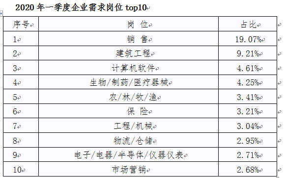 据了解,为帮助生产抗击新型冠状病毒防护物资用人单位尽快复工复产,2月初以来,南方人才急聘栏目迅速推出多期防控物资生产企业专题招聘,先后帮助广州市重点生物医药企业万孚生物科技、香雪制药、南新制药、维力医疗器械等公司免费招聘生物医药行业人才。而销售类岗位需求,以绝对优势位居首位,占比为19.07%。“跑市场”“做业务”的人才是大量企业寻找的目标。