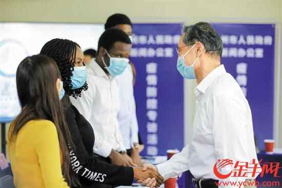 15日,钟南山与19名外籍人士一一握手 羊城晚报全媒体记者 宋金峪 摄