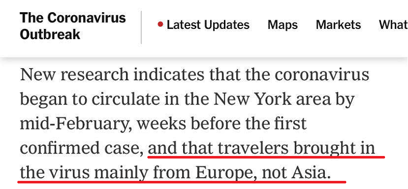 纽约新冠病毒来自哪里?美媒:最新研究显示主要来自欧洲而不是亚洲