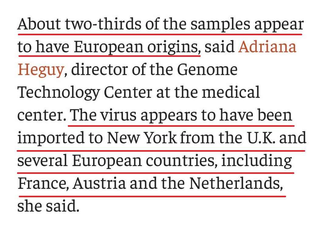 △相关报道截图(病毒似乎是从英国、法国、奥地利和荷兰等几个欧洲国家输入到纽约的)