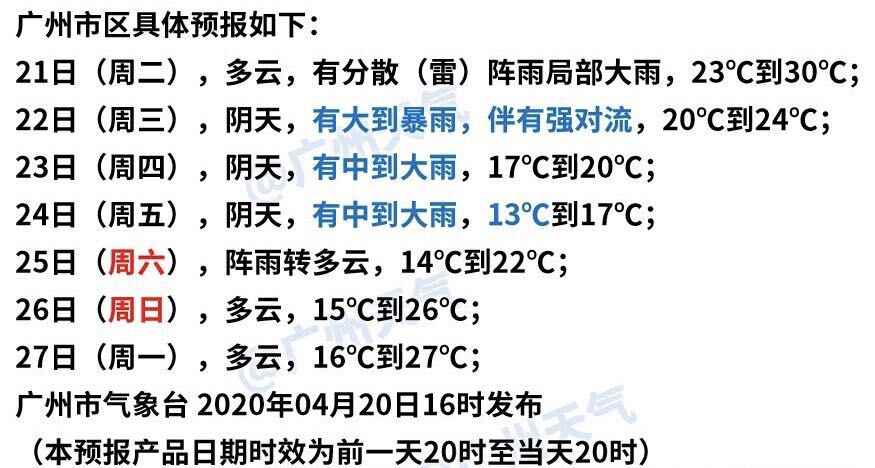 广州市区具体天气预报 来源于“广州天气”官方微博