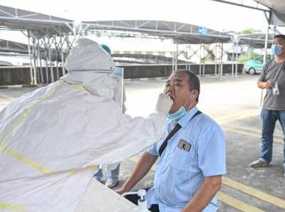 4月20日,广东省广州市荔湾区,出租车司机接受体温检测。据悉,自19日至21日,广州对全市出租车司机陆续开展新冠肺炎核酸检测服务。中新社记者 陈骥旻 摄