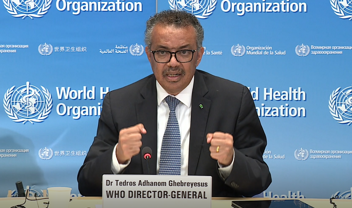 世界卫生组织总干事谭德塞20日在日内瓦的新闻发布会上表示,新冠病毒是一种非常危险的病毒,他利用了人与人之间、政党与政党之间、国家与国家之间的分歧。他呼吁“不要把这种病毒作为相互对抗或者赢得政治得分的机会。这很危险,就像在玩火。”他警告说,如果不能在各国国内以及各国之间加强团结,“最糟糕的时刻即将到来”。