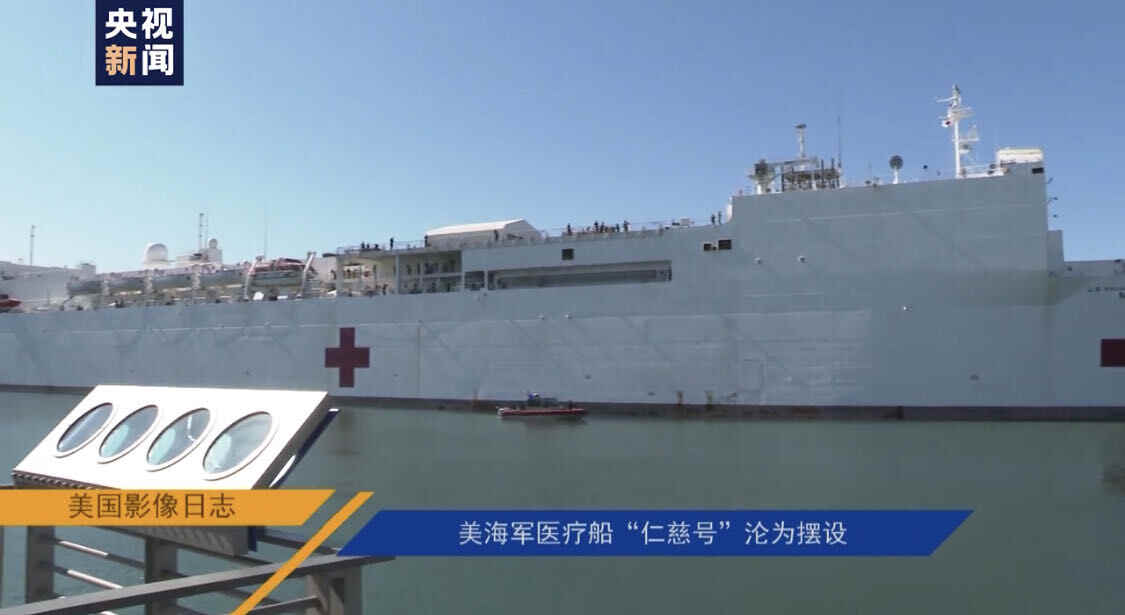 在美国新冠肺炎疫情期间,美国海军医疗船“仁慈”号奉命支援加州,停靠洛杉矶港口,用于接收和治疗非新冠患者,以减轻疫情给当地医院带来的负担。
