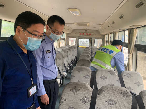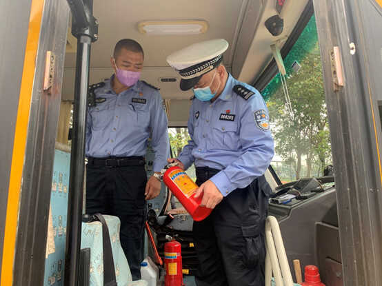 现场,执法人员对校车“四证”,即校车许可证、驾驶证、交强险、行驶证的基本情况逐一核对,重点检查校车及校车驾驶人是否具备校车驾驶资格、校车车况、安全装置等情况,是否符合安全运行条件。并逐车检查了车外的车身标识、校车标志灯、轮胎、车内是否配备灭火器、逃生锤、医药箱、安全带等安全设备有效情况,对17所首批复学返校的校车联合检查验收,确保学生道路交通安全工作落到实处,做到“保学生,保安全”,为首批复学返校学生迎接新学期保驾护航。