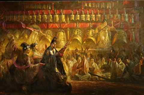 涂志伟聊起求学的日子,一直在探索想要有自己的艺术风格。“我出去留学的时候,探讨过很多现代美术运动,还有85思潮等等,我自己也实践过很多现代艺术,倒回来看了世界那么多东西,觉得我自己就应该有我自己的艺术出来。”涂志伟指指他的作品《肢体语言:舞乐·编钟·古音》,“因为我有一个优点,我对中国历史画,不只是单纯的创作,而且是有爱好。特别是1978年编钟出土的时候,我专门跑到湖北随州现场去看,当时我很震撼,也直接导致我产生了影响至今的一个愿望:我应该对中国历史题材进行创作。”于是,怀着艺术热枕和远大愿景,涂志伟投身到以西方油画技艺展现中国浓郁历史底蕴的艺术创作中。1983年首个中国历史题材油画《七步诗》完成,1994年在芝加哥画廊展出时,被美国著名收藏家威尔逊 哈利看到,他本来打算花10万美元买10张画的,结果看到《七步诗》后,一定要买这幅画,全倾10万美元就买了这一幅《七步诗》。90年代,继《七步诗》之后,涂志伟创作的《反弹琵琶》、《唐代乐舞》、《歌舞升平》、《虞姬舞剑》、《昭君叙汉》等等中国历史题材大作陆续推出,每一幅都卖出十多万美元的高价,在油画界、收藏界引发轰动,这对于当时九十年代的美国油画界来说是很罕有的。涂志伟对他艺术创作总结说:“我学了那么多东西,看了那么多的对比,就觉得自己应该在中国历史画上面能够创造自己一个独特的风格。世界上很多人画历史题材,我们中国人也有。但是我是在艺术形式上有一个突破:用人的肢体来表现一个画面,每一个肢体表现一个画面,比如说手胸背脚,通过肢体或者局部的肢体来构成一个艺术的形式。这个构图就是世界上、包括历史上画这些历史题材的都没有出现过的!”