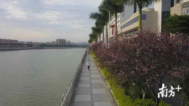 四月中旬,鲜花盛开,市民们慢步梅江河畔,感受宜人风景。
