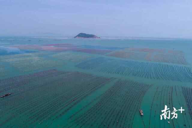 汕头南澳岛,碧蓝的海水轻轻地摇曳着蚝田。