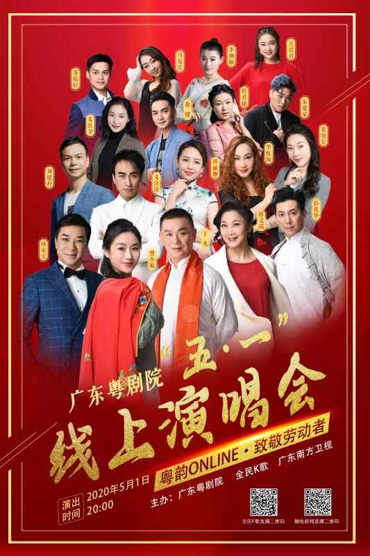 @粤剧粉丝,打开手机又能欣赏到广东粤剧院粤剧名家的线上演出啦!5月1日20:00,粤韵ONLINE·致敬劳动者——广东粤剧院“五·一”线上演唱会将于全民K歌、触电新闻同步直播。 该活动由广东粤剧院和腾讯“全民k歌”、广东南方卫视主办。届时,粤剧名家丁凡、曾小敏、蒋文端、林家宝、彭庆华、文汝清、李虹陶、刘建科,著名主持周丽珊,国家二级演员梁晓莹、朱红星 ,青年演员程君捷 、康健、苏临轩、马友民、李俐颖、朱建豪、吴碧君等名家青年演唱《粤曲联唱》《喜登长城》《老旦》《张文贵践约临安》《伦文叙传奇之“纱巾曲”》《唐宫香梦证前盟之“痴梦”》《再进沈园》《百花亭赠剑》《红豆曲》《走进春天》《花好月圆》《花亭圆梦》《薪火·红棉》等曲目。