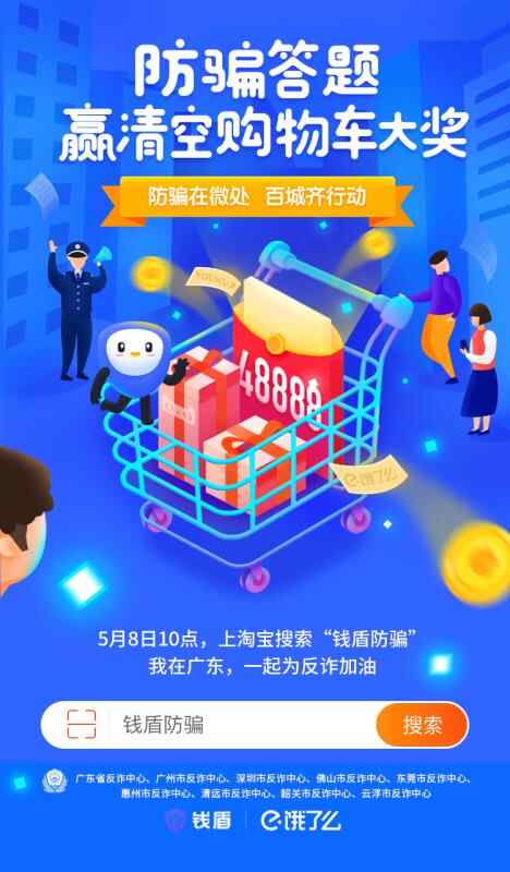 5月8日起,广东这8个市的市民扫码参与防骗答题,就有机会赢得清空购物车的大奖!