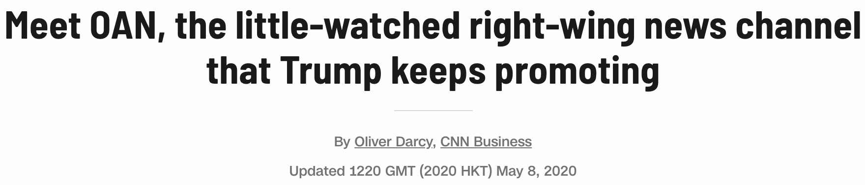 5月8日,CNN发布了《看看OAN吧:特朗普一直力撑的名不见经传的右翼媒体》,图文并茂并配以超过5分钟的视频,从整体基调、报道水准、用户数量等诸多方面抨击了OAN。