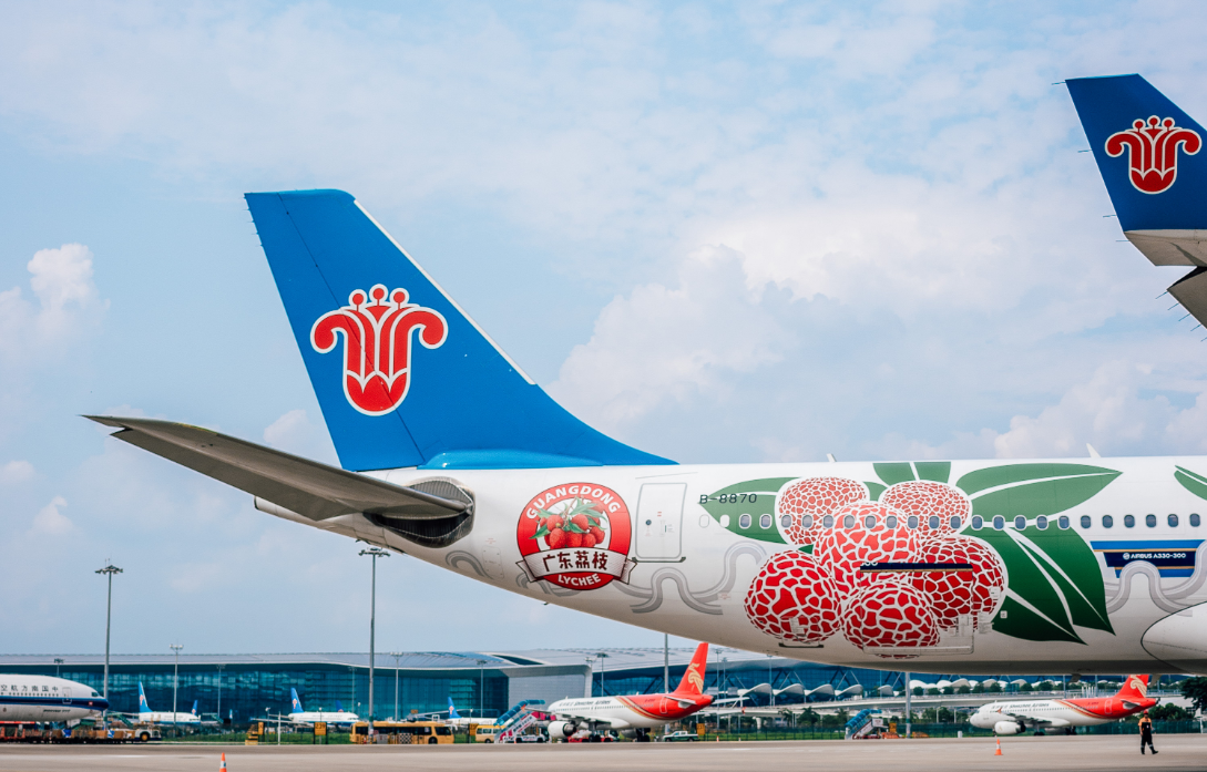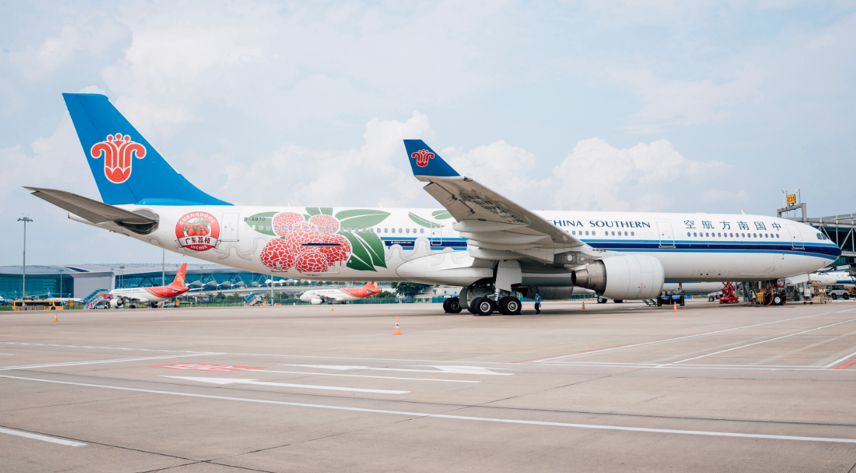 5月20日上午,一架身披荔枝特色涂装的南航A330客机从广州白云国际机场腾空而起,南航“广东荔枝号”航班成功首航。这是南航与广东省农业农村厅联合推出的主题航班,也是全球首架以荔枝为主题的特色涂装航班。