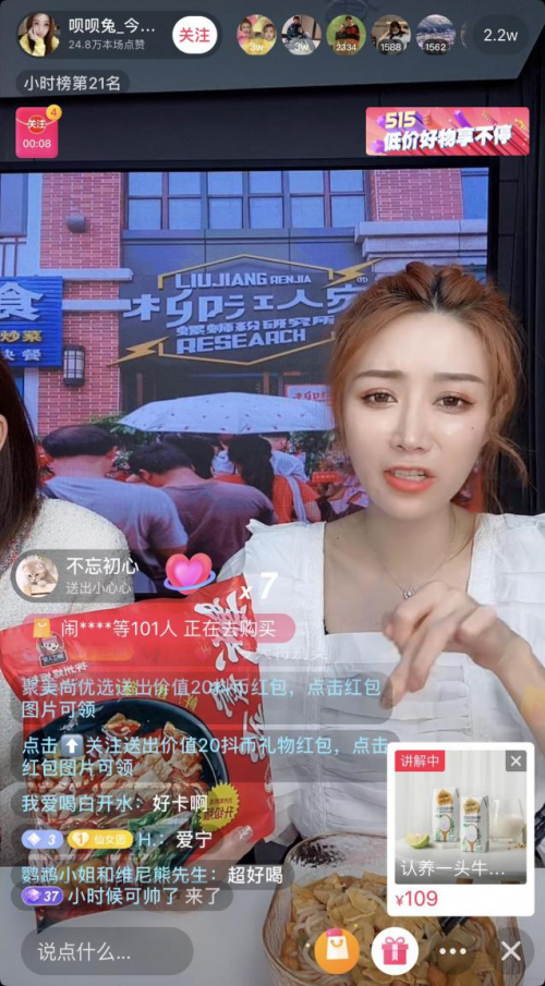直播间内,柳江人家螺蛳粉、红功夫小龙虾虾尾,大希地牛排等众多美食满足每一个“吃货”的胃。直播过程中,呗呗兔不仅为粉丝试吃各种美食,还现场教学如何烹饪牛排,不少呗呗兔直播间的老粉也纷纷留言“好吃极了”、“买过,真的好吃“。