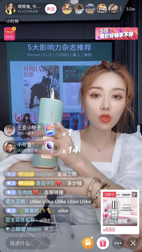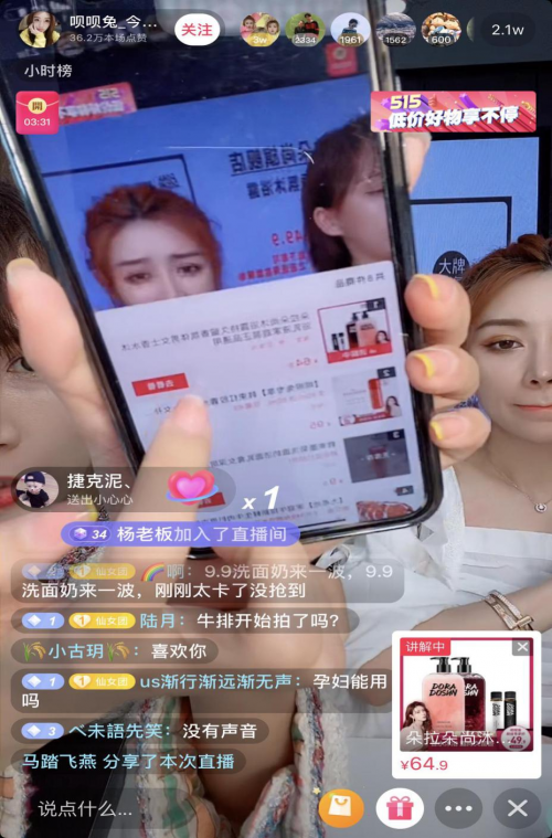“很多宝宝喜欢长黑头、痘痘,这是因为没有做好清洁护肤。”作为美妆博主呗呗兔现场为粉丝教授护肤秘籍。不仅如此,呗呗兔更是将直播间作为科普平台,为粉丝讲解“空气炸锅为什么不用油”、“脱毛仪为什么选用蓝宝石”等问题,同时也会实时回答弹幕里用户的各种提问,呗呗兔用自己的专业知识帮助用户快速选择最适合他们的产品。