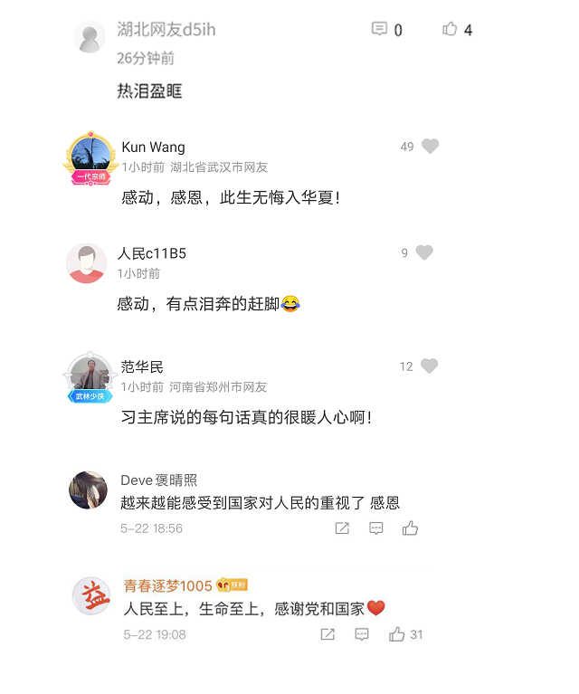 许多网友回应:“越来越感觉到国家对人民的重视了”“真的很骄傲,在我们国家人民群众永远是最重要的”“人民的力量是无穷的”……