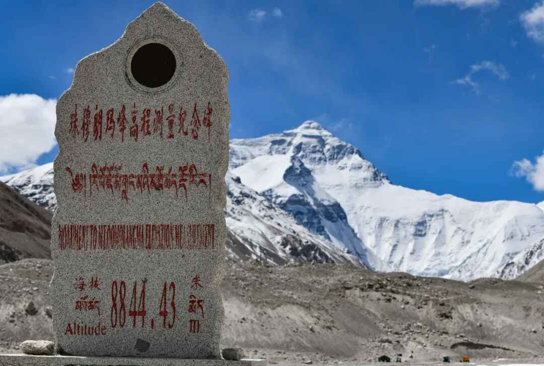 矗立在珠峰脚下的2005年珠峰高程测量纪念碑(新华社图)。