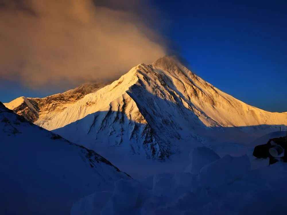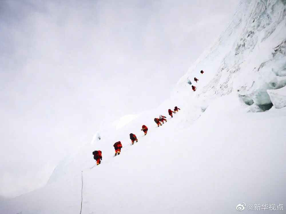 2020年5月26日,最新冲顶队员从海拔7790米的二号营地出发,前往海拔8300米的突击营地。图片来源:新华社