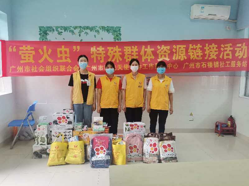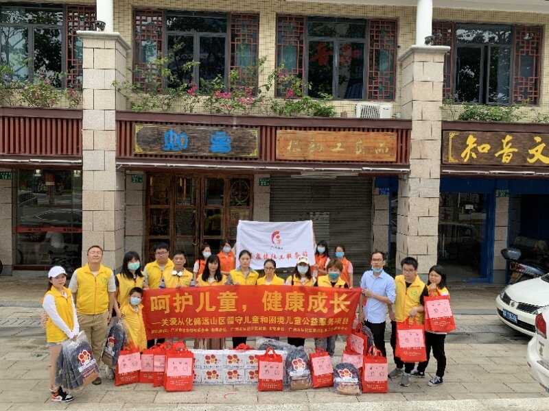 广州市社会组织联合会发起发起“伴童计划”(百名事实无人抚养儿童支持项目),与11家社会组织为106名困境儿童开展相关服务。在六一儿童儿童节期间,向服务对象收集心愿清单,结合其年龄、性别及使用需求挑选心愿礼物,其中包括学习用品、生活用品、运动用品及其他物资4类共42种爱心物品,其中为76户困境儿童家庭赠送311件价值22201.43元的“蓄力开学包”。为另外40户事实无人抚养儿童家庭购置价值910万元保额的公益保险,保障范围包含法定传染病、意外伤害及财产损失三个方面,为事实无人困境儿童及家庭增强抗风险能力。