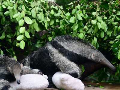 据了解,大食蚁兽怀孕一般是单胎,出现双胞胎的几率在只有0.5%至1%之间。一般大食蚁兽刚出生的时候约为1200-1500克,但这对双胎的雄性大食蚁兽的出生只有900克,雌性大食蚁兽则稍重一点,体型都比单胎的幼崽小。