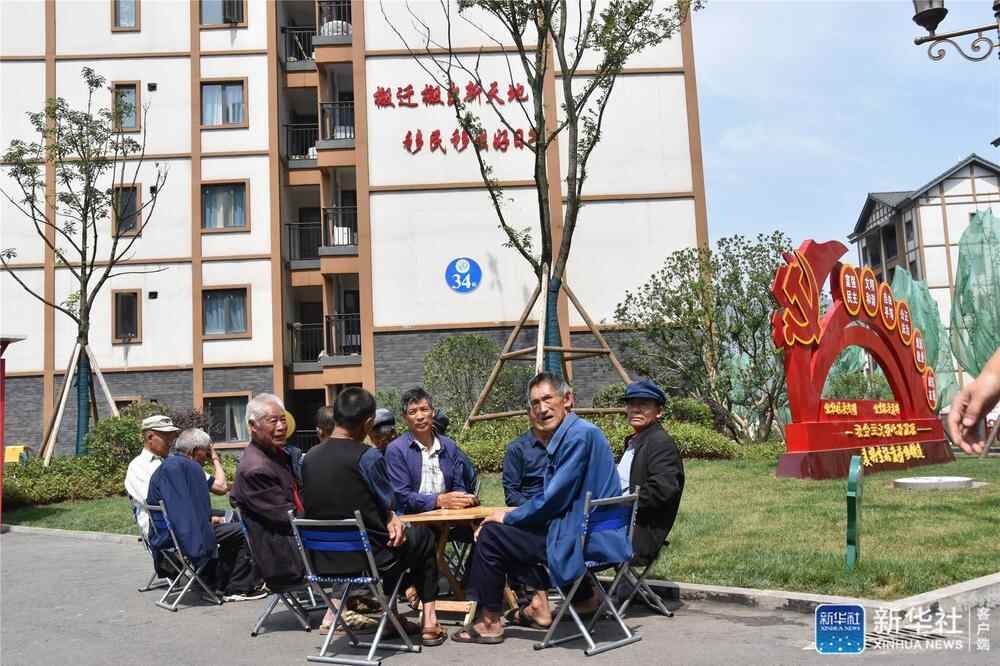 在毕节市赫章县县城新建的易地扶贫搬迁小区,移民在休闲娱乐(2019年8月18日摄)。新华社记者 段羡菊 摄