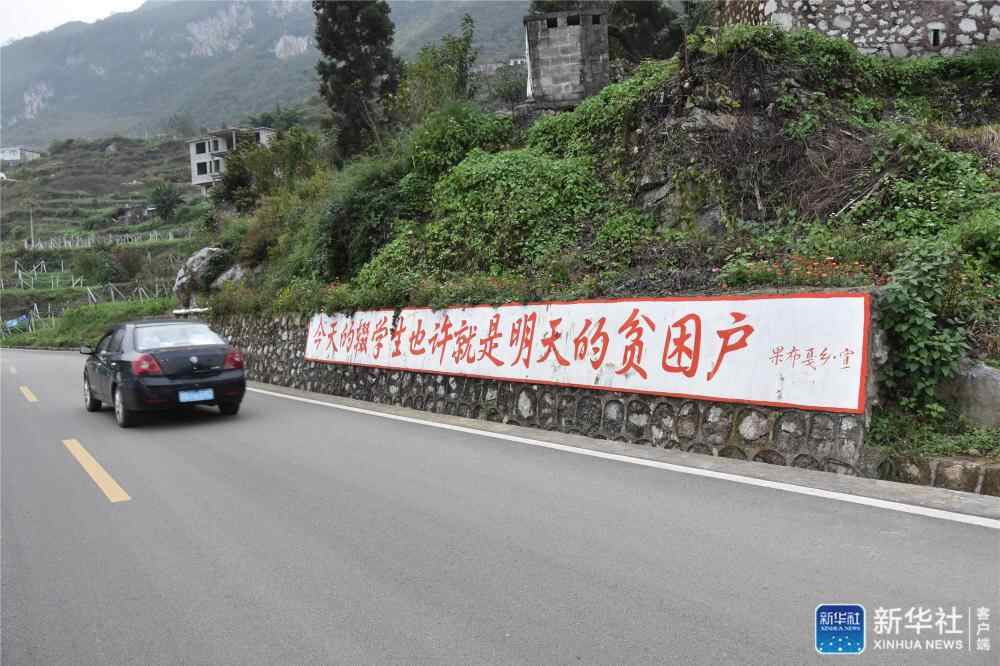 “今天的辍学生也许就是明天的贫困户。”六盘水市水城县果布戛乡的山路上,这句直言不讳的话,用红漆醒目地刷涂在路旁的坡壁。“有田不耕仓库虚,有书不读子孙愚。”这句标语写在望谟县郊纳镇集镇附近的路旁。