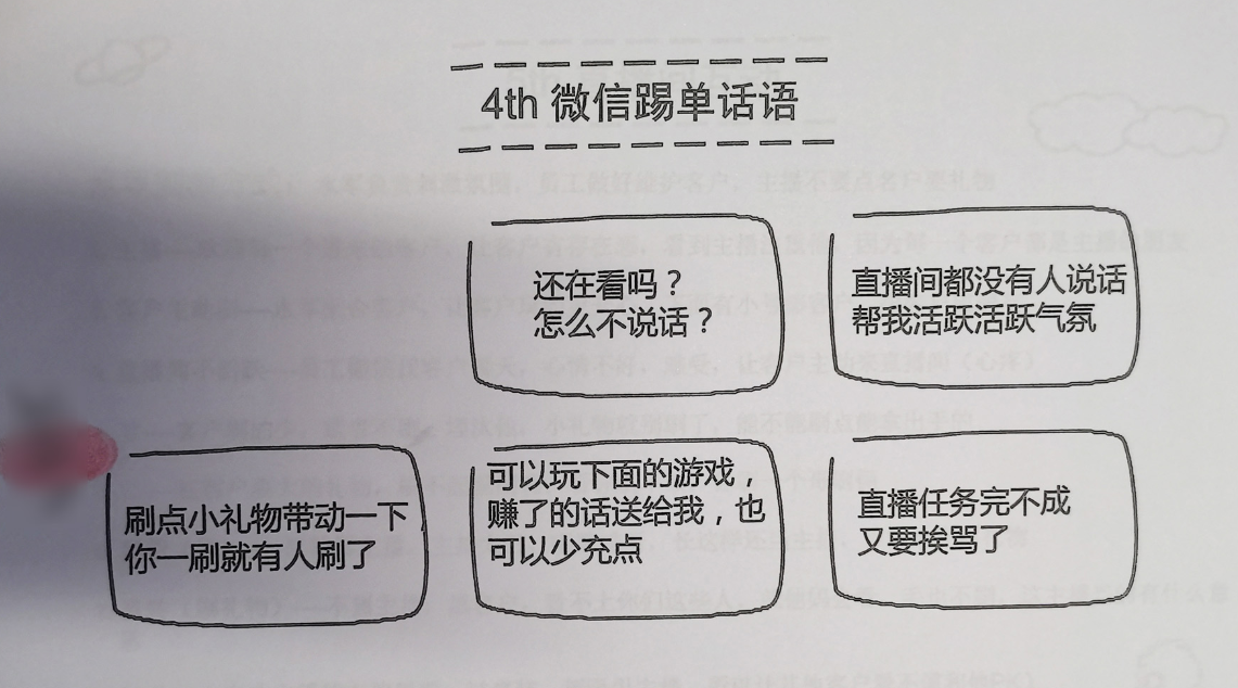 王某还自制了“话术本”提供给公司相关人员学习和使用。该“话术本”详细规定了“包装定位”“聊天技巧”“行为忌讳”和“直播间互动”等内容,甚至对女主播的“血型”“独特喜好”“父母职业”等情况都作了明确说明。