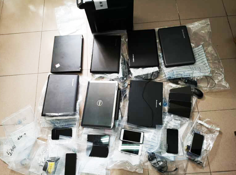 5月13日22时许,黄埔警方采取抓捕行动,在辖内某写字楼抓获犯罪嫌疑人王某、巫某等6人,现场查获涉案电脑7台、手机12台。