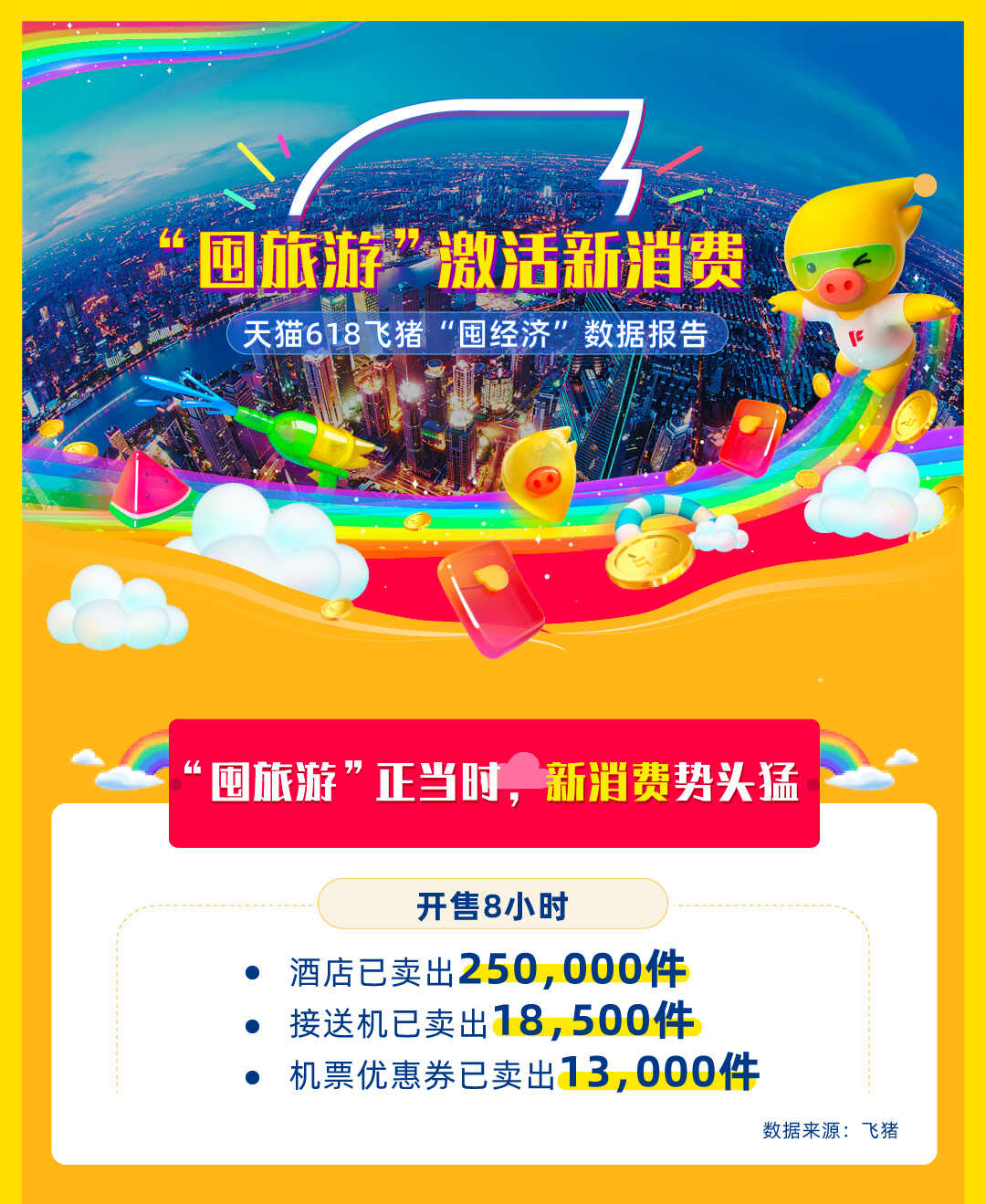 金羊网讯 天猫618的旅游商品于今天零点开售,宅了快半年的人们相当不淡定。开售8小时,飞猪的酒店套餐已卖出250,000件,接送机券已卖出18,500件,机票优惠券已卖出13,000件…旅游作为“新消费中的新消费”,在天猫618奔涌强劲的复苏力。受疫情重创的旅游业,也在飞猪迎来了“回血之战”开门红。