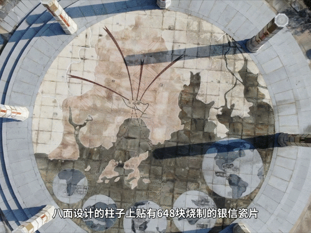 博物馆外的银信纪念广场中,20根银信柱环绕四周,八面设计的柱子上贴有648块烧制的银信瓷片,艺术性地向后人展示先侨们海外打拼的全过程。