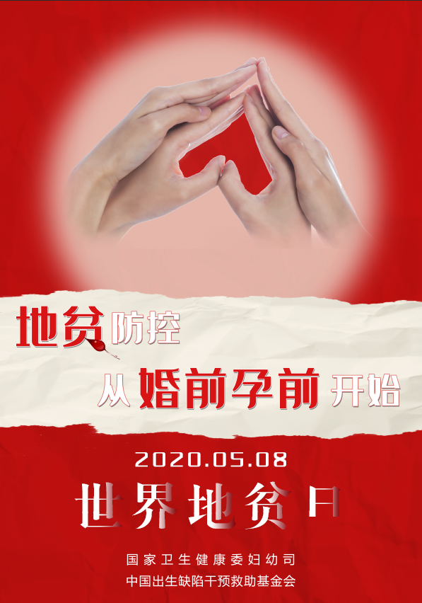 2020年5月8日是第27个“世界地贫日”。今年“世界地贫日”主题宣传以互联网宣传为主,主题为“地贫防控,从婚前孕前开始”,旨在强调预防为主、共建共享防控策略和工作方针,宣传地贫一级预防措施的积极作用和重要意义,引导公众强化个人健康意识和责任,科学认知地贫,有效防控地贫。
